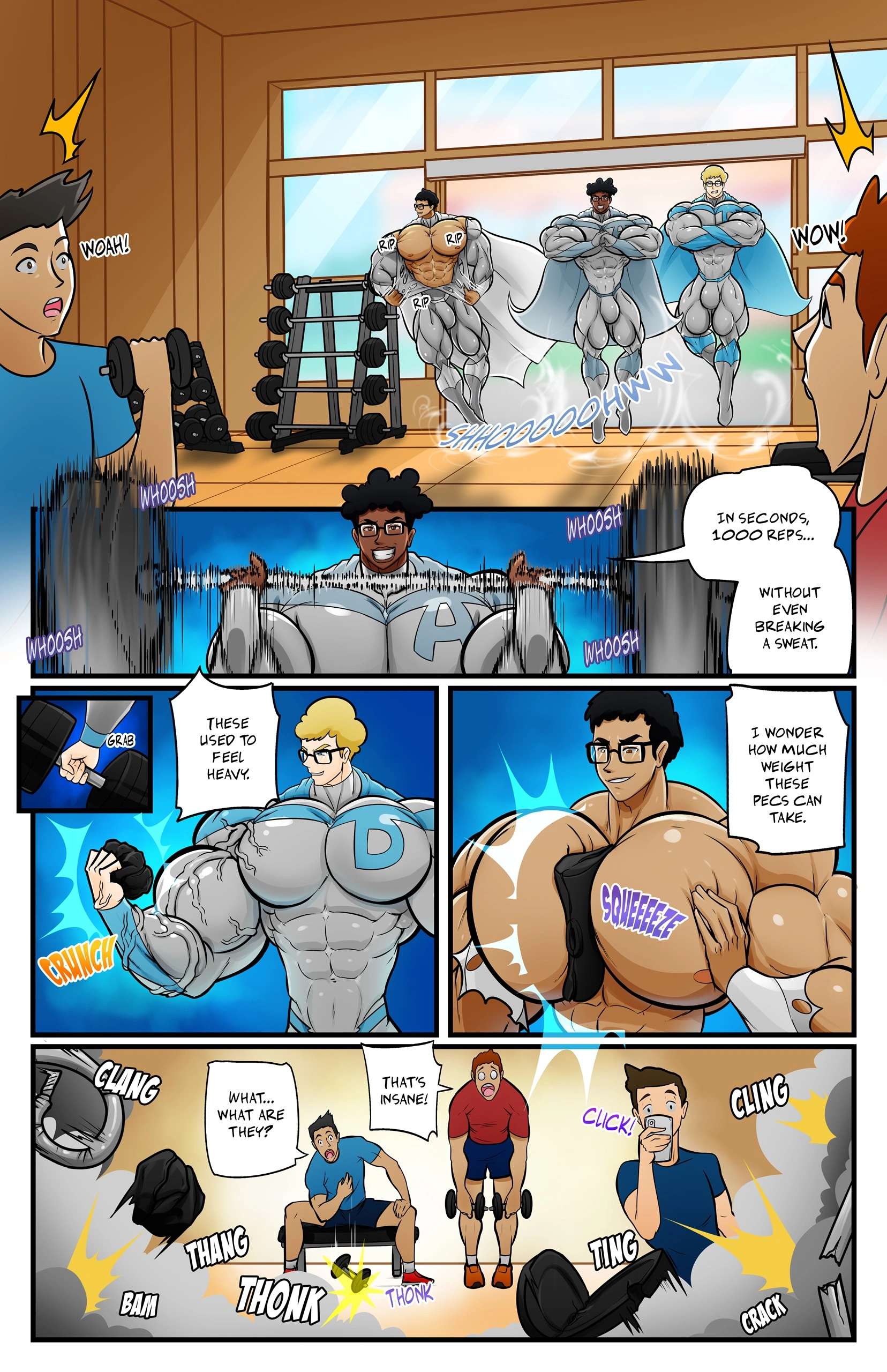 If you’re looking for the ultimate muscle growth transformation story, The Power Chamber Part 2 is the comic for you. In this 15-page adult comic, a group of college nerds who are constantly bullied undergo a dramatic change, turning into massive, muscle-bound men with superhero-like powers. Witness as their bodies grow to enormous proportions, embracing muscle expansion and newfound strength that reshapes the balance of power in their college.